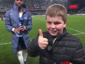 有爱,姆巴耶把自己的球衣送给了给他颁发全场最佳奖的小男孩