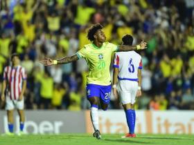 U20战报:友谊赛巴西3-1巴拉圭,布鲁尼尼奥2射1传