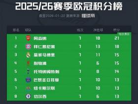 欧冠积分榜:阿森纳、拜仁已提前出线,皇马、利物浦同积15分