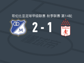 卡利美洲3-0大胜马达莱纳联合取哥伦甲5连胜,克里斯蒂安-巴里奥斯破门,路易斯-拉莫斯建功