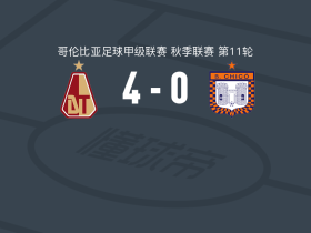 托利马体育4-0大胜博亚卡奇科,Mauricio González建功,罗维拉破门