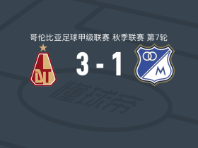 麦德林独立3-2逆转托利马体育,莱德-贝里奥两球,门德-加西亚破门