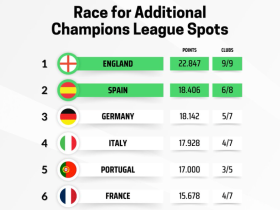 欧战积分更新:英超本轮9战1胜仍大幅领先,西甲、德甲争第二