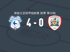 卡迪夫城4-0大胜巴恩斯利,克里斯-威洛克两球,凯利曼传射