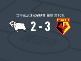 沃特福德3-2逆转德比郡,埃多-卡延贝两球,谢尔鲁姆高建功