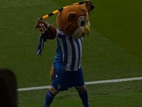 与球迷们在一起,谢周三的吉祥物也加入了对老板的抗议行动中