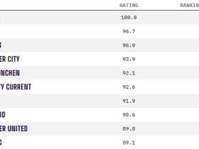 Opta女足俱乐部实力排名:巴萨女足满分居首,切尔西女足次席