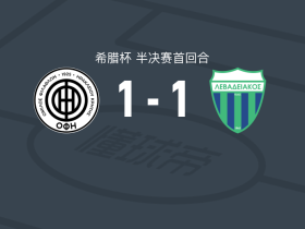 90分钟战报:莱瓦贾科斯1-1战平阿里斯,双方进入加时赛