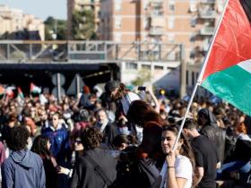意大利国家队训练基地附近,爆发了支持巴勒斯坦的游行示威