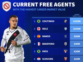 德转列目前自由身球员生涯最高身价榜:库鸟、阿里、拉莫斯前3