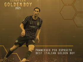官方:皮奥-埃斯波西托荣获2025年金童奖最佳意大利年轻球员