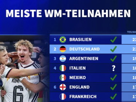 世界杯参赛次数榜:巴西23次居首,德国第二阿根廷第三
