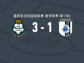 桑托斯拉古纳3-1克雷塔罗,比利亚尔瓦点射,凯文-帕拉西奥斯建功