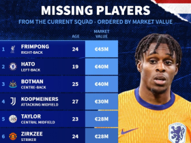 此次未入选荷兰队身价前10:弗林蓬领衔,哈托、齐尔克泽上榜