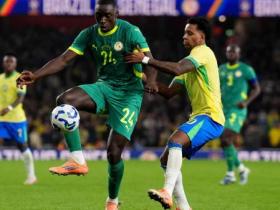 巴西2-0塞内加尔,埃斯特旺、卡塞米罗破门,库尼亚两度中框