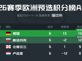 世欧预A组结局:德国出线,斯洛伐克、北爱尔兰附加赛