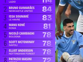 2025五大联赛被犯规榜:拉齐奥前锋扎卡尼114次,吉马良斯第二