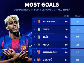 五大联赛历史U19进球榜:欧文、劳尔、姆巴佩、亚马尔上榜