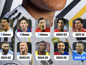 姆巴佩13球升至单赛季欧冠进球榜第七,距C罗纪录只差4球