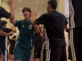互致问候,U17世界杯期间日本队与墨西哥队在酒店相互列队致意