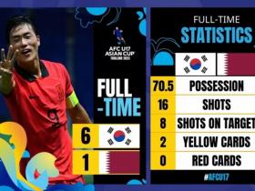 U17亚洲杯B组第1轮:韩国6-1卡塔尔