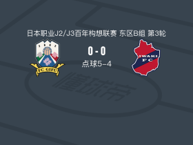 90分钟战报:FC岐阜0-0战平磐城,双方进入点球大战