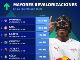 本赛季德转身价涨幅榜:扬-迪奥曼德暴涨7350万欧第1,卡尔第2