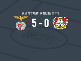 本菲卡U19 5-0横扫勒沃库森U19,贡萨洛-莫雷拉双响,吉尔-内维斯建功
