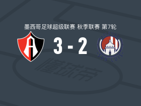 瓜达拉哈拉阿特拉斯3-2逆转圣路易斯竞技,阿古斯丁-罗德里格斯建功,爱德华多-阿吉雷点射