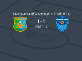 90分钟战报:八户云罗里1-1战平横滨FC,双方进入点球大战