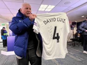 大卫-路易斯送签名球衣给退休员工,后者为切尔西工作了56年