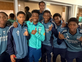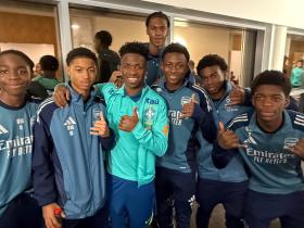维尼修斯和阿森纳U16球员合影,2米法国门将抢镜