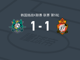 安山绿人1-1水原三星蓝翼,保罗-恩里克破门,金建旿扳平比分