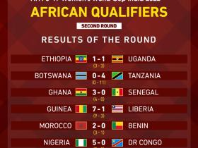 非洲U17女足世预赛第二轮次回合赛果:博茨瓦纳0...