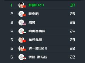 U23亚洲杯小组赛解围榜:彭啸37次断档领先,贺一然排名第六