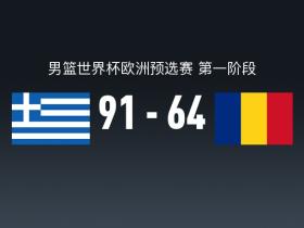 男篮世欧预战报:希腊男篮91-64大胜罗马尼亚男篮,拉伦扎基斯18+1+6