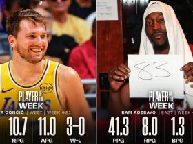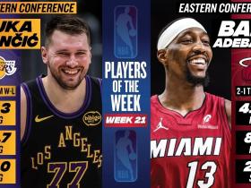 官方:阿德巴约和东契奇分别当选上周NBA东西部最佳球员