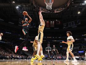 无解,文班站帽奇才队员,随后收板完成一条龙反击滑翔扣篮