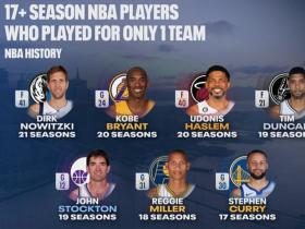 NBA一人一城17+赛季榜单:诺维茨基、科比领衔,库里为唯一现役
