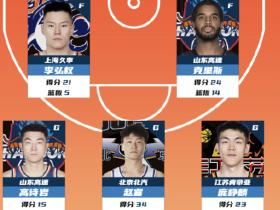 CBA第28轮最佳阵容:李弘权、赵睿、庞峥麟、克里斯和高诗岩