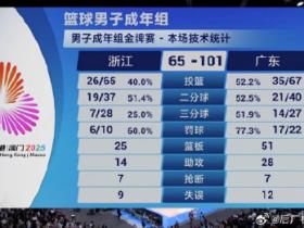 广东男篮101-65大胜浙江夺全运会冠军,徐杰18+7+9,赵睿13+6
