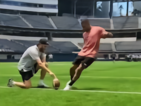 排面!NFL巨星库珀晒与姆巴佩在美国踢橄榄球视频