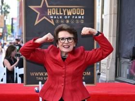 WTA创始人比利-简-金在好莱坞星光大道留星,为文体界首位女性
