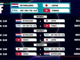 世界杯小组赛F组赛程:荷兰vs日本北京时间6月15日4点打响