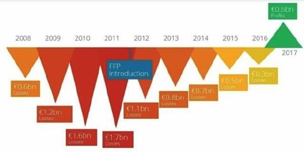 (图)FFP法案实行之后,欧洲俱乐部整体扭亏为盈