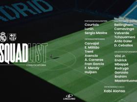皇马国家德比大名单:阿诺德、卡瓦哈尔、赫伊森等人回归