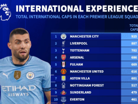 英超俱乐部球员国家队出场数榜:曼城、利物浦前2,切尔西第18