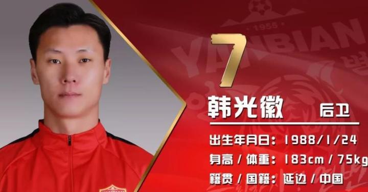 韩光徽在北理工、延边踢过球,攻守能力都很强。2018赛季在延边踢左后卫,出场次数达到25次。他主要踢左后卫、左前卫两个位置,也踢过边锋。原球队解散,待业中。