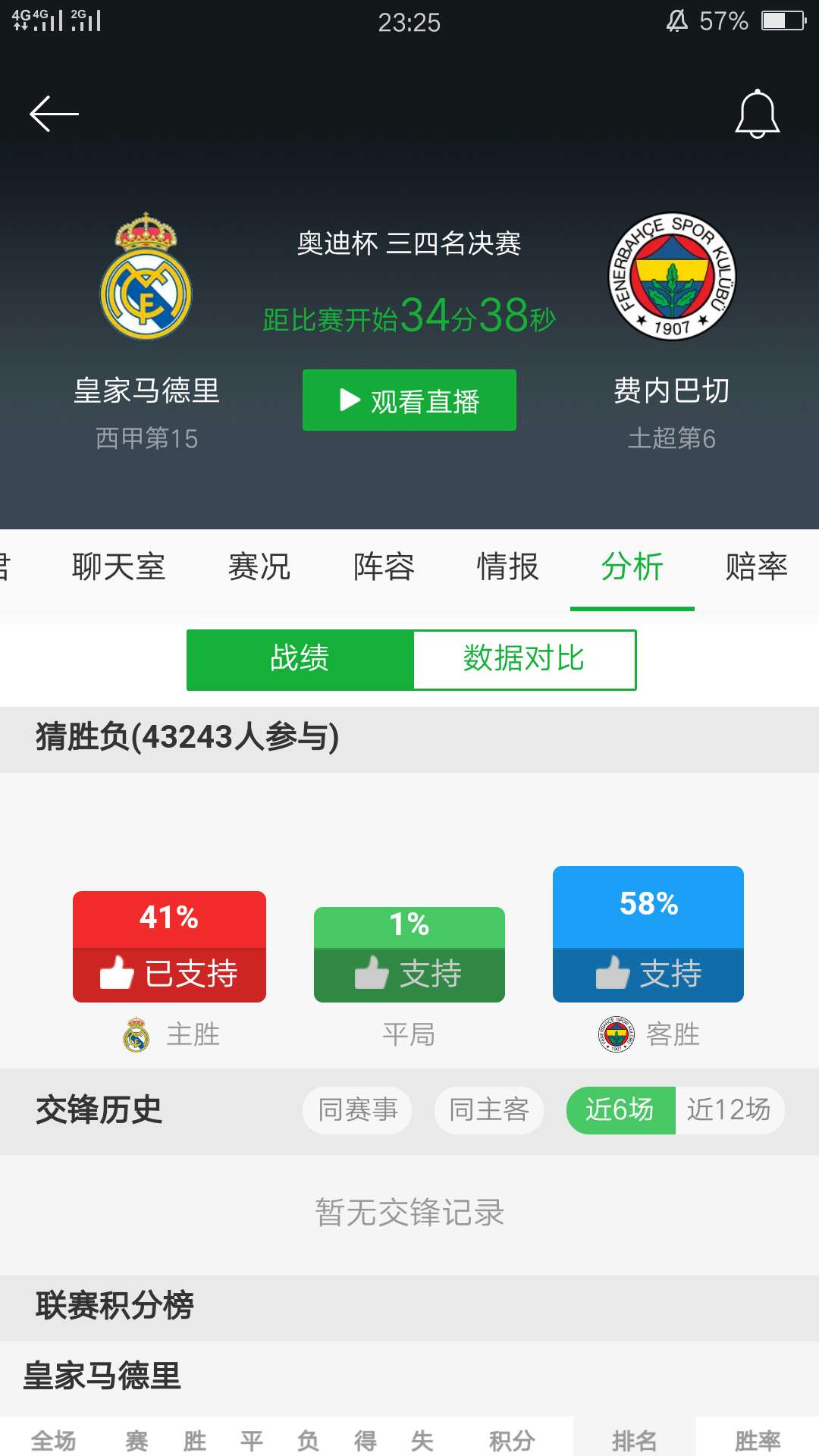 第6分钟,罗德里格斯闪电破门,皇马0-1费内巴切。