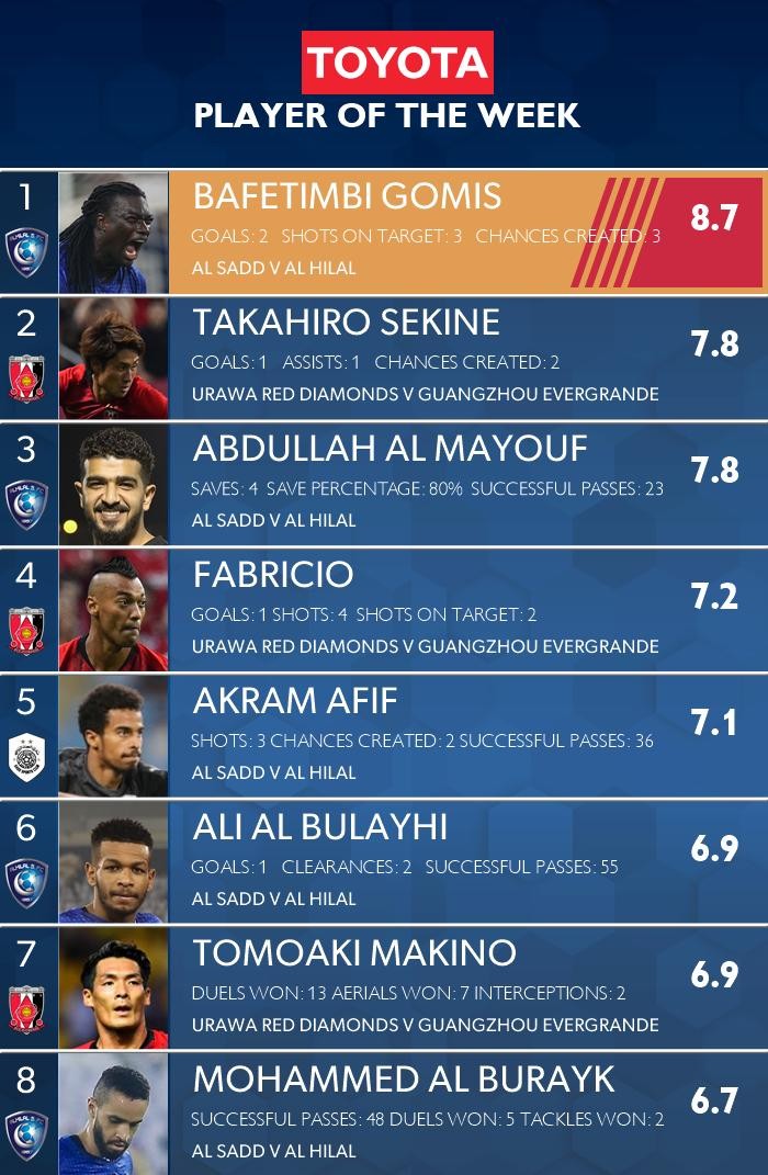扫描下载懂球帝首页>动态> 亚冠本周最佳球员评选:戈米居首,浦和三将入选